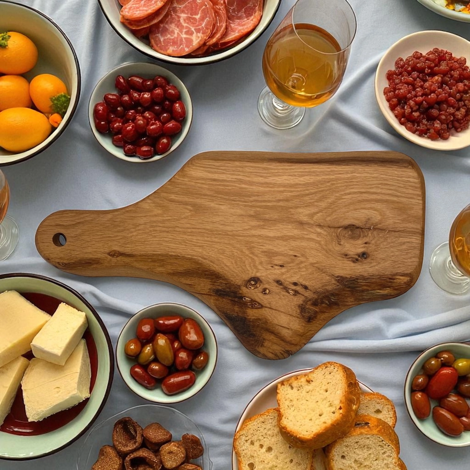 Handcrafted chopping board made of solid ancient oak wood is an elegant and practical accessory, perfect for any kitchen. Each piece is handcrafted by expert craftsmen which gives this cutting board a unique and distinctive character. Ancient oak, with its charming grains and warm tones ranging from light to dark brown, not only offers an attractive aesthetic, but also guarantees remarkable strength and durability. This cutting board is ideal for slicing ingredients, preparing small portions or serving appetizers and snacks in an elegant way. The surface is sanded by hand, ensuring a smooth finish that is pleasant to the touch, while the natural imperfections of the wood, such as knots and grain, add a touch of authenticity and charm. The compact size makes it easy to handle and store, making it a perfect choice for those with limited space in the kitchen. The handcrafted cutting board in solid ancient oak wood is a perfect combination of functionality and design, an accessory that enriches every culinary experience and celebrates the beauty of natural wood.