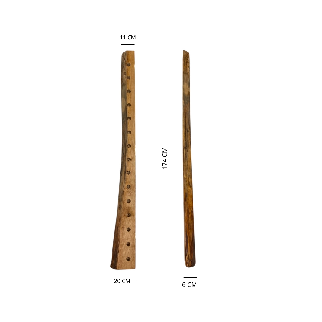 Il design verticale ottimizza lo spazio e permette di esporre le bottiglie in modo ordinato, valorizzando etichette e collezioni. Un oggetto che racconta la bellezza del legno e il fascino del lavoro manuale, ideale per gli amanti del vino e dell’artigianato.