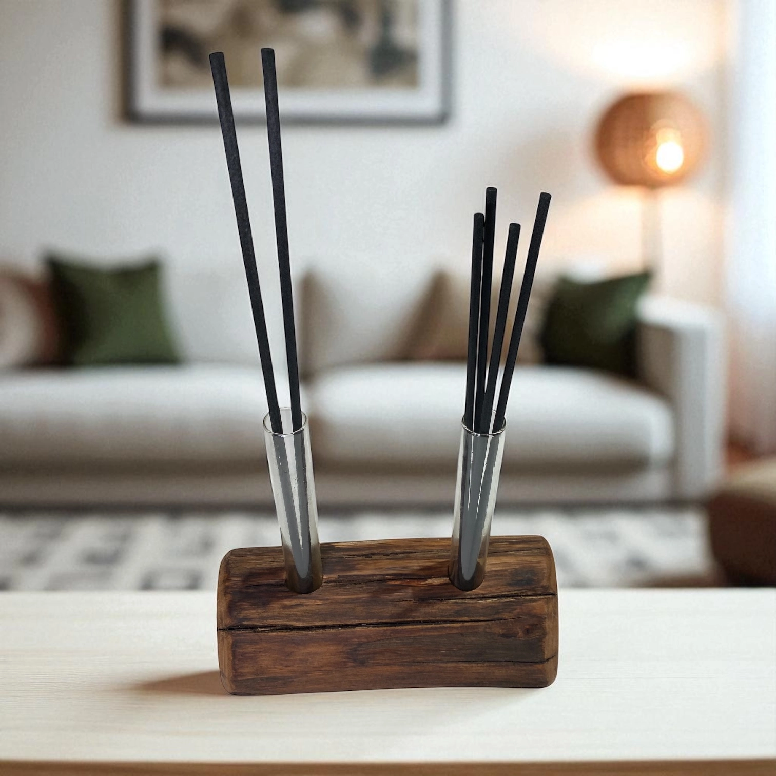 Flower holder or room freshener, with glass vials for flowers or essential oils. Handmade product, every difference in shape and size makes each piece unique.