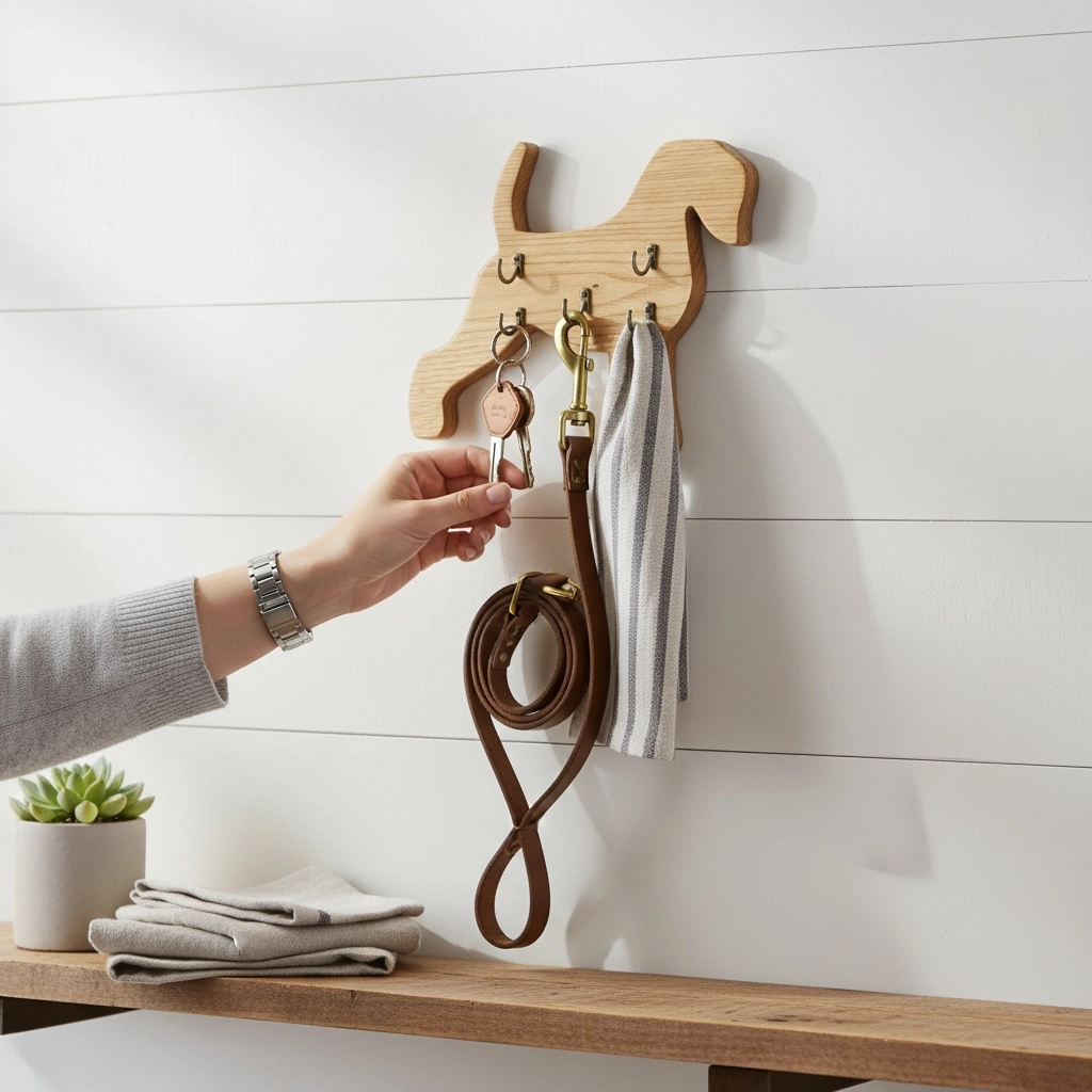 Questo appendi chiavi da parete in legno massello di castagno, sagomato a forma di cane Schnauzer, è un complemento d’arredo originale e funzionale, perfetto per gli amanti degli animali. Realizzato artigianalmente, mantiene la bellezza naturale del castagno, con venature calde e sfumature uniche che rendono ogni pezzo irripetibile. La silhouette stilizzata richiama fedelmente il profilo dello Schnauzer, trasformando un semplice oggetto quotidiano in un elemento decorativo di carattere. Dotato di robusti ganci in metallo, è ideale per appendere chiavi, strofinacci, guinzagli, collari o piccoli accessori. Facile da fissare alla parete, si adatta perfettamente all’ingresso, alla cucina o a uno spazio dedicato ai tuoi amici a quattro zampe. Un accessorio pratico che unisce funzionalità e design artigianale, portando in casa il calore autentico del legno naturale e un tocco di personalità.