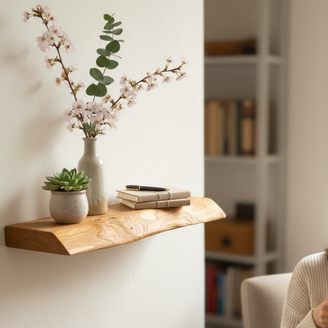Il montaggio a parete è semplice, veloce e molto intuitivo. Il design minimale si adatta a stili moderni, rustici o industriali. Potete creare composizioni creative giocando con diverse altezze e lunghezze. La mensola trasforma pareti anonime in spazi espositivi di grande impatto. È la base ideale per fotografie, piccoli quadri o piante cadenti. Ogni oggetto esposto acquista valore grazie allo sfondo del legno naturale. La casa diventa così uno specchio della vostra personalità unica.