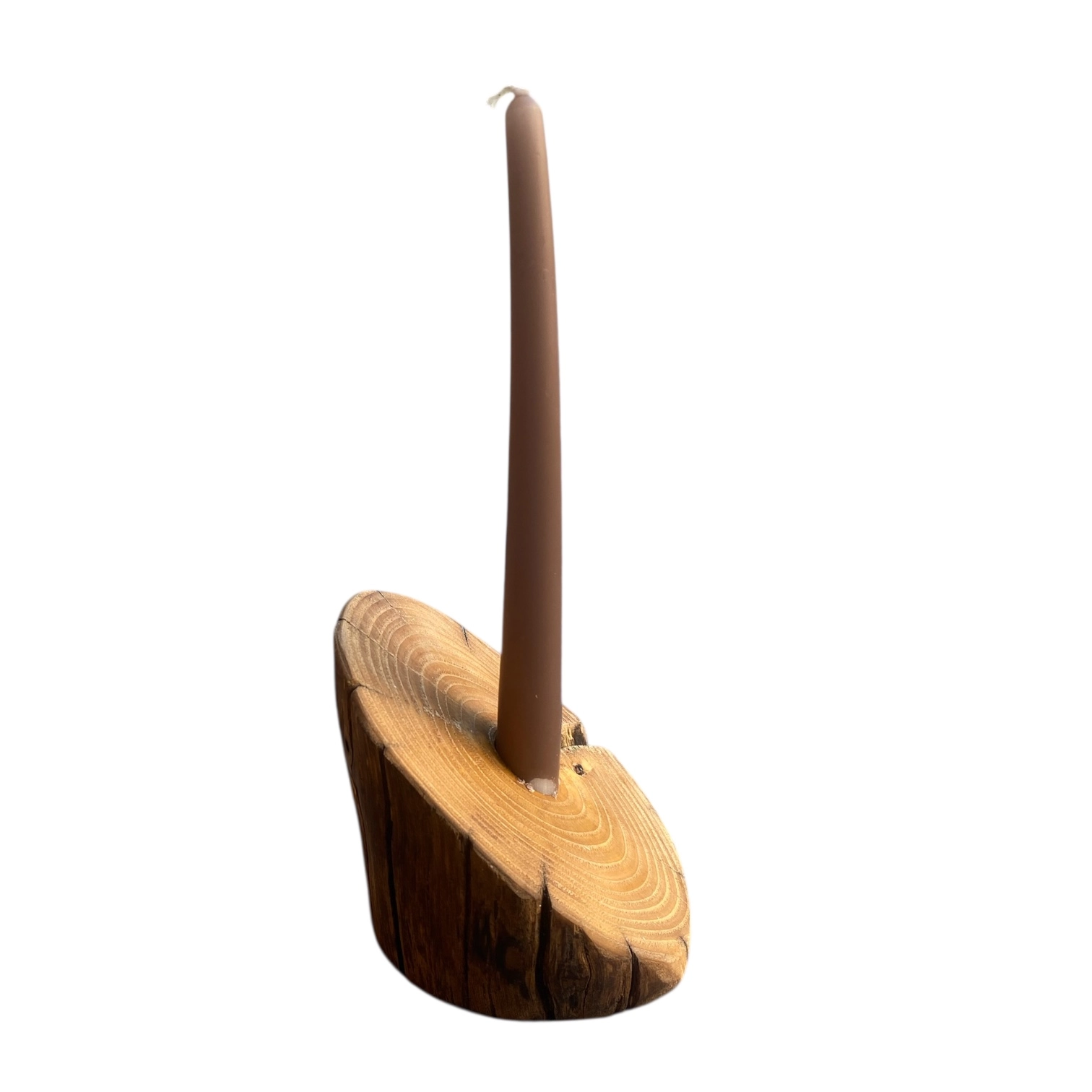 Portacandele artigianale forma irregolare realizzato in legno massello di castagno antico.