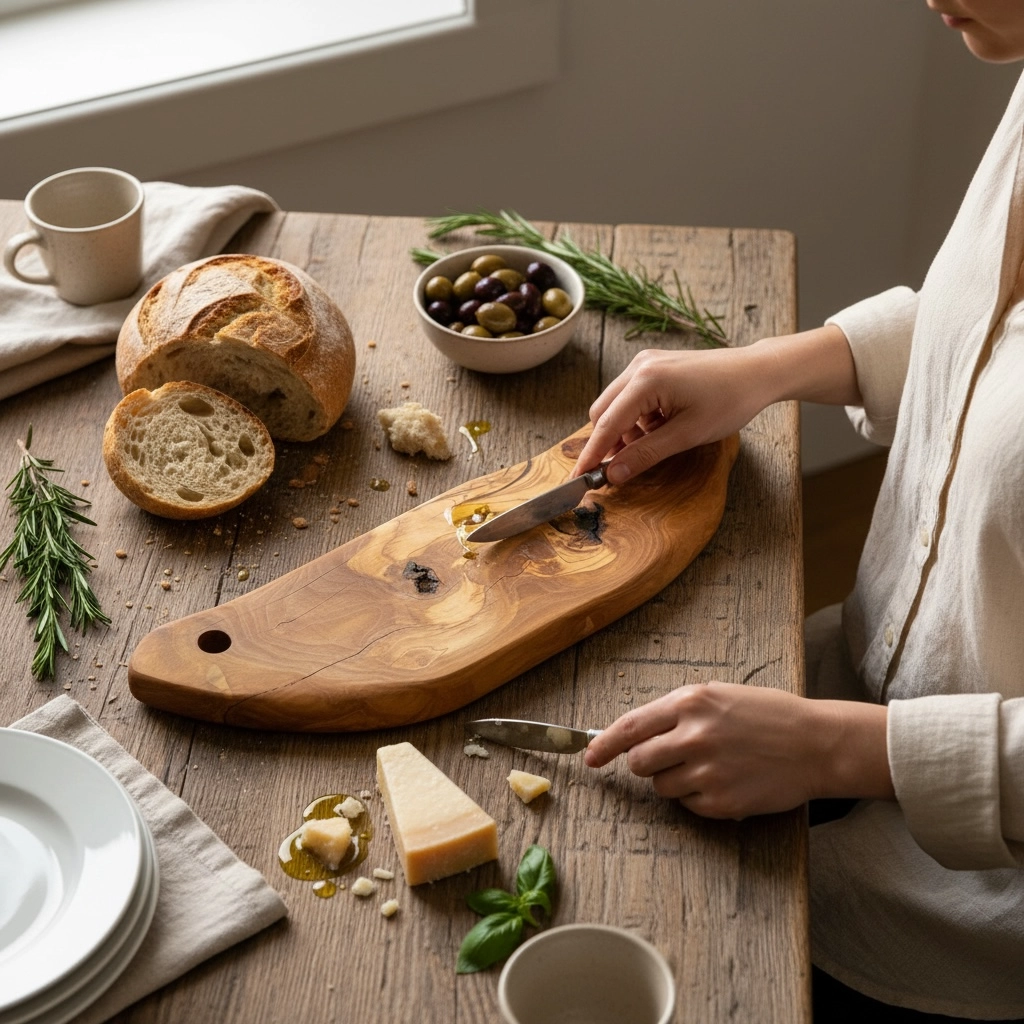 Tagliere Artigianale in Legno Massello di Ulivo – Forma Irregolare