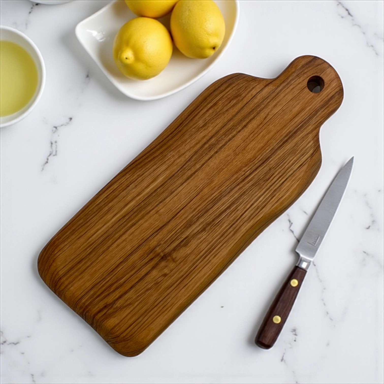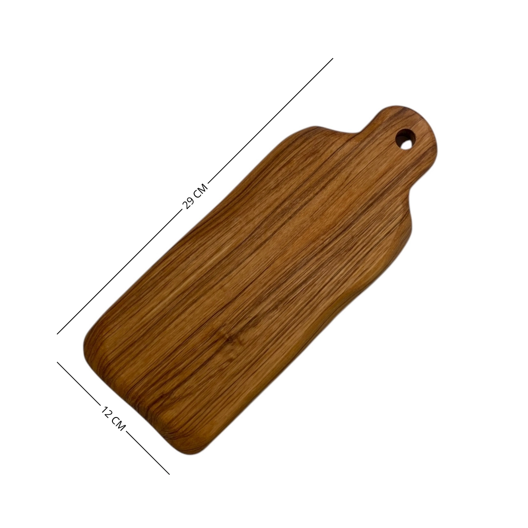 La superficie levigata e la finitura ad olio ne esaltano le venature uniche, rendendo ogni pezzo diverso e irripetibile. Il pratico manico garantisce una presa sicura e agevole, perfetta per servire formaggi, salumi, antipasti o dolci con eleganza.