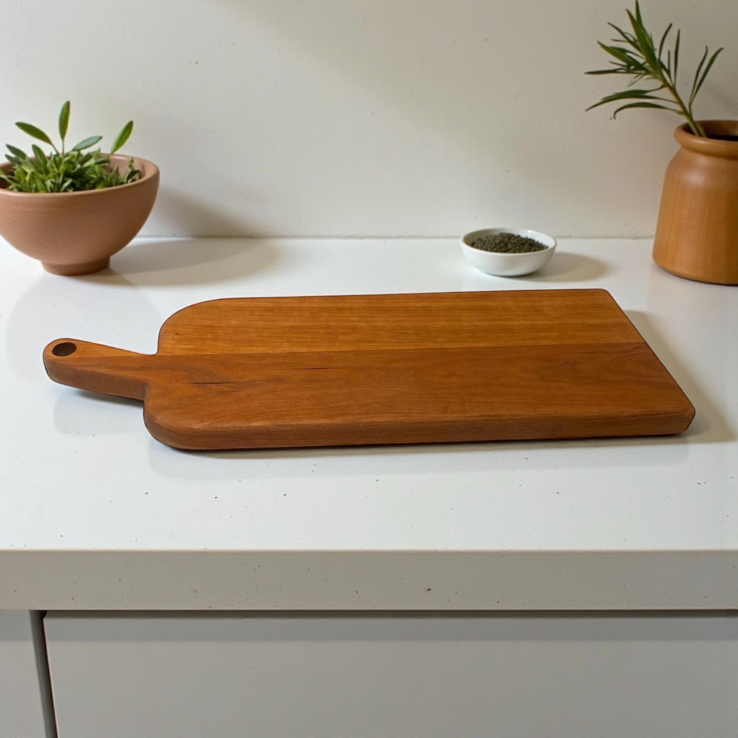 Tagliere Artigianale in Legno Massello di Ciliegio con Manico