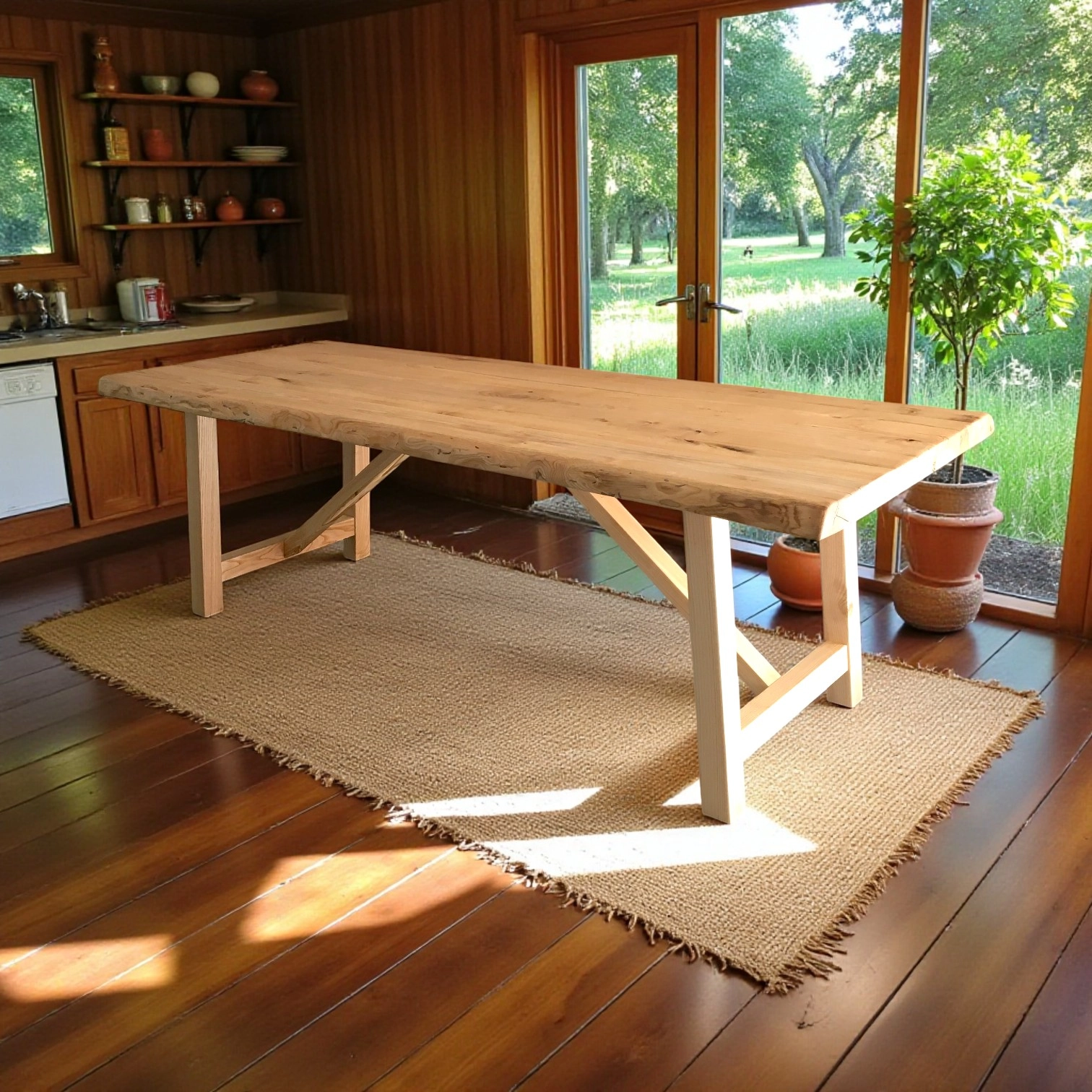 Interamente realizzato a mano, questo tavolo è ideale per chi desidera portare in casa un elemento d’arredo capace di unire calore, robustezza e un design senza tempo.