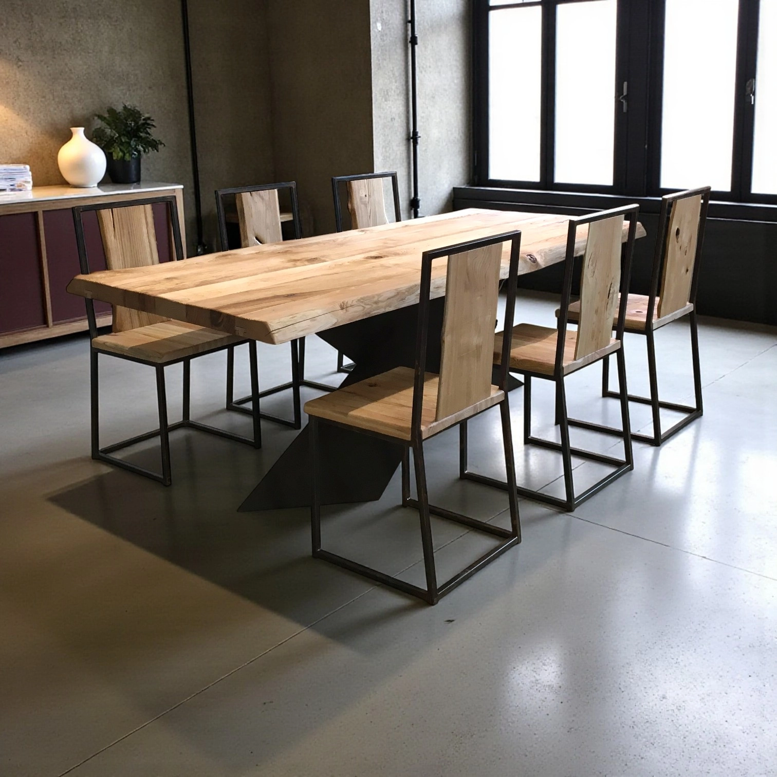 Perfetto come tavolo da pranzo, per una zona living o un ambiente professionale dal gusto ricercato, aggiunge personalità, calore e robustezza a qualsiasi spazio. Un pezzo di artigianato che valorizza il legno naturale e garantisce durata nel tempo.