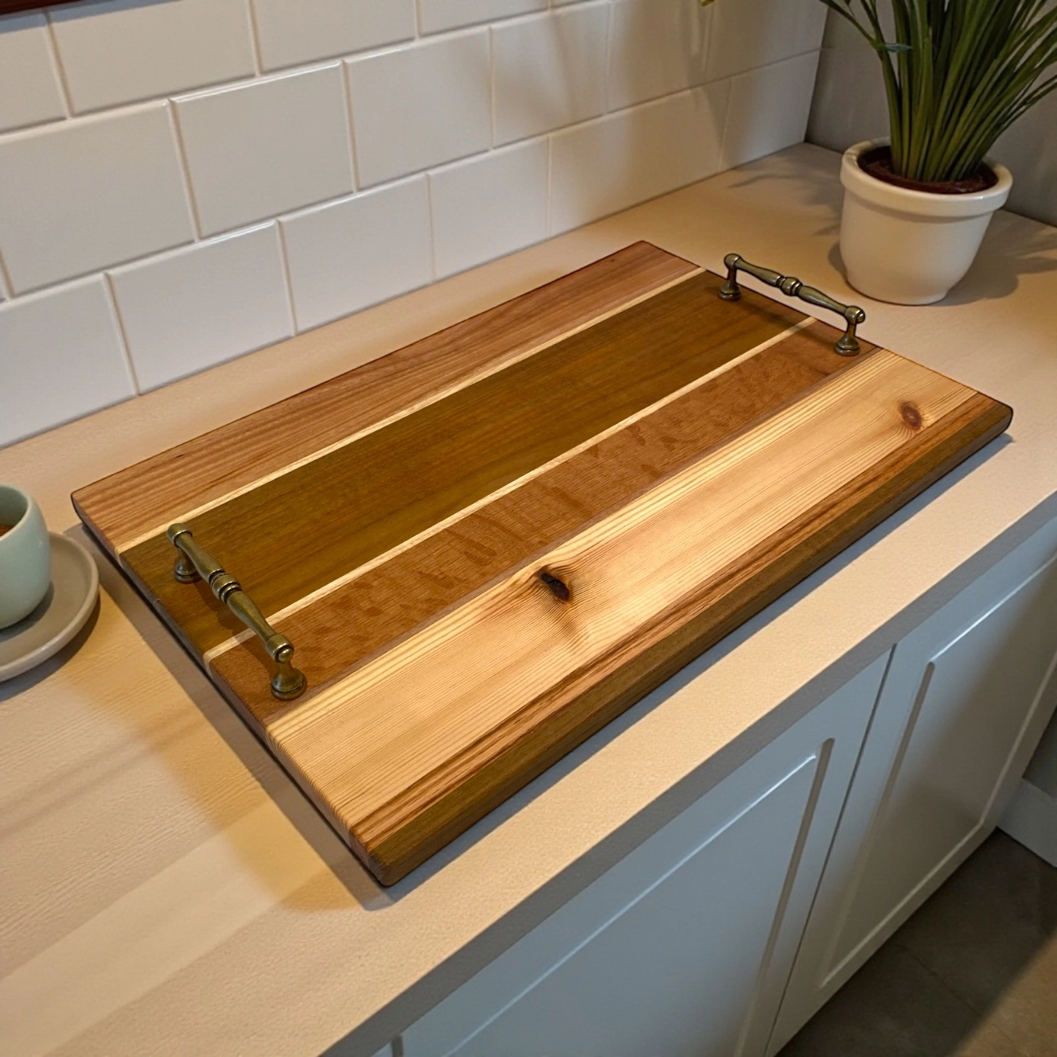 Questo esclusivo vassoio in legni misti è un raffinato esempio di artigianato italiano. Realizzato a mano, unisce diverse essenze di legno disposte a righe di varie larghezze, creando un effetto cromatico naturale e armonioso.