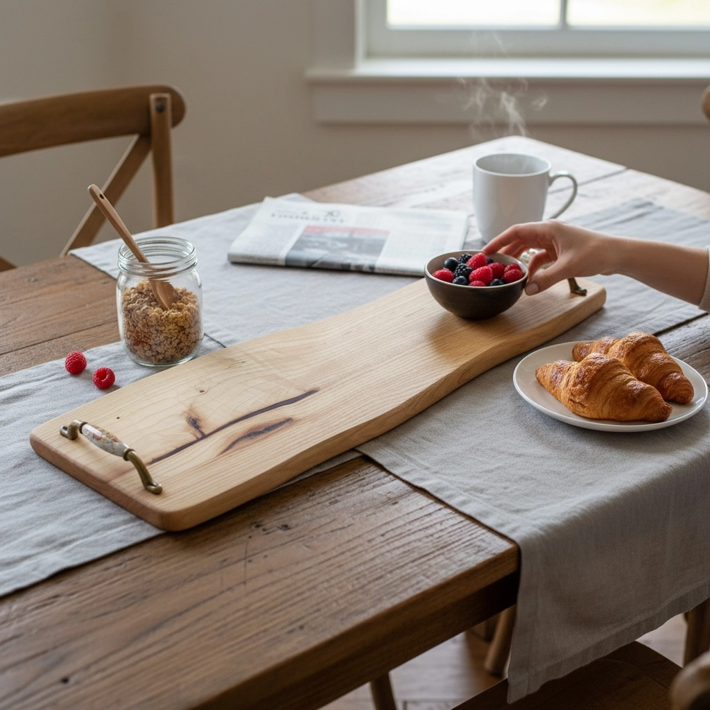 Il vassoio stretto e lungo in legno massello di frassino è un complemento d’arredo elegante e funzionale, pensato per valorizzare la tavola e gli ambienti della casa con uno stile autentico e naturale. Realizzato artigianalmente, mantiene i bordi irregolari originali del legno, esaltando le venature chiare e dinamiche tipiche del frassino. La forma slanciata lo rende perfetto per servire aperitivi, antipasti, dolci o bevande, ma anche come base decorativa per centrotavola, candele o composizioni stagionali. Le maniglie laterali in metallo con dettaglio decorativo aggiungono un tocco raffinato e garantiscono una presa pratica e sicura. Ogni pezzo è unico, con leggere variazioni di forma, nodi e sfumature che raccontano la naturale bellezza del legno massello. Ideale per ambienti moderni, rustici o nordici, questo vassoio unisce estetica e funzionalità in un oggetto dal fascino senza tempo.